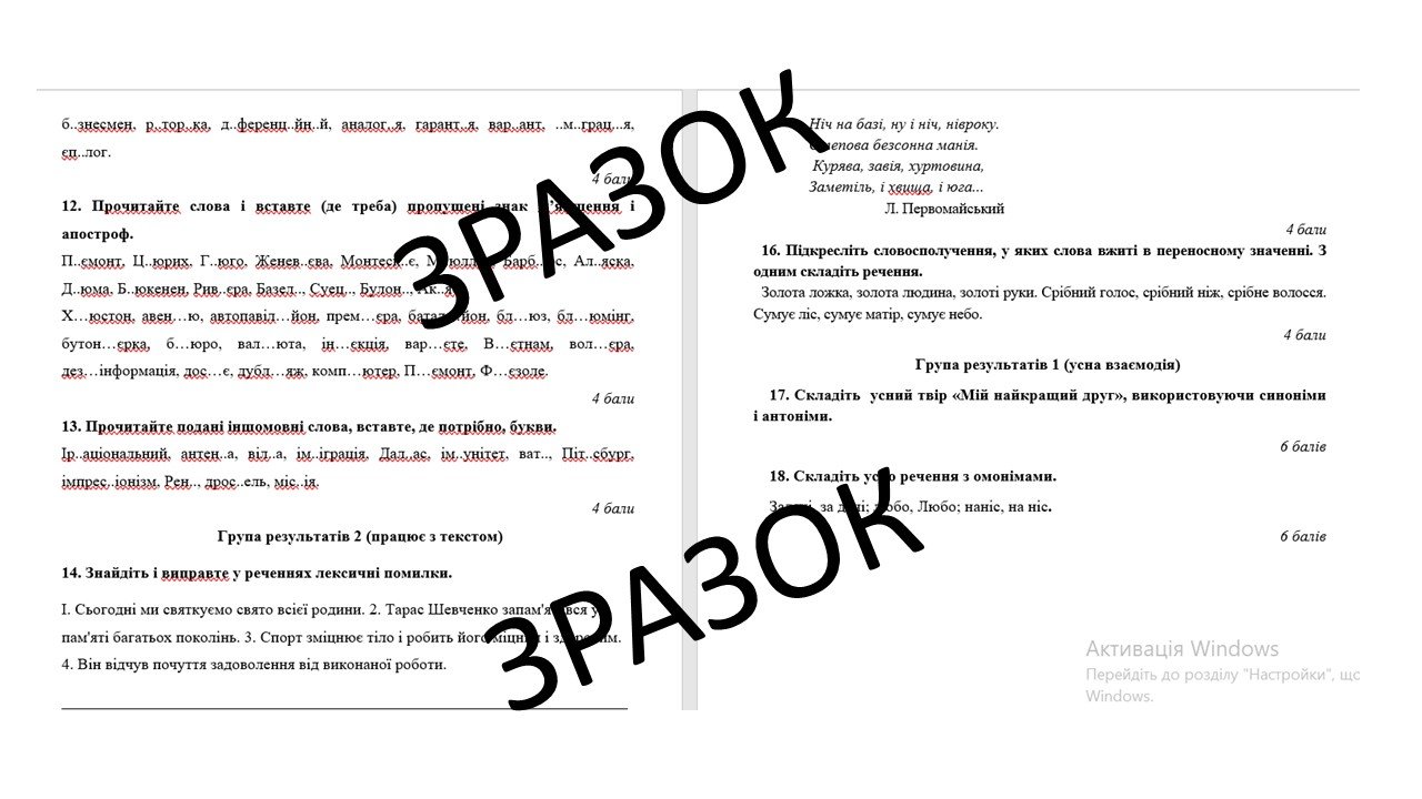 8 клас. КПР з української мови “Словосполучення” (МП Голуб) за чотирма ГР!!!! 2 варіанти