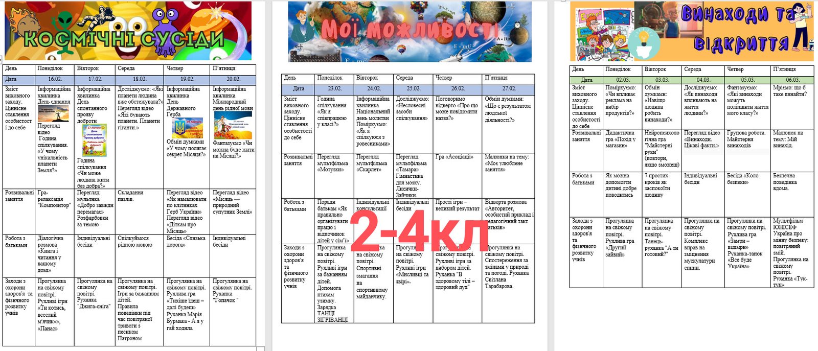 Пропоную КТП вихователя ГПД по тижням НУШ на ІІ семестр 2025-2026 н.р. з матеріалами для роботи вихователя, які йдуть окремим документом у форматі word з датами використання згідно плану, а саме: