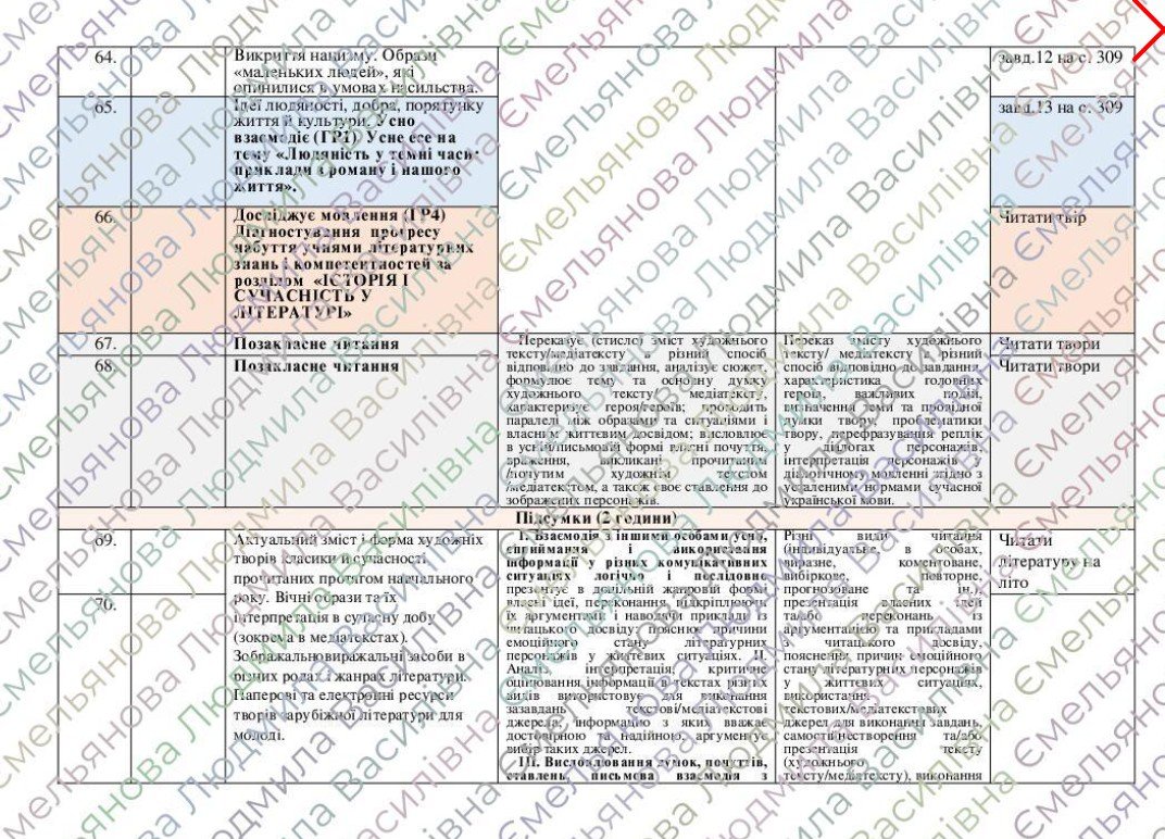 Орієнтовне КТП З групами результатів із зарубіжної літератури 9 клас НУШ (70 год.) до підручника Ніколенко О.
