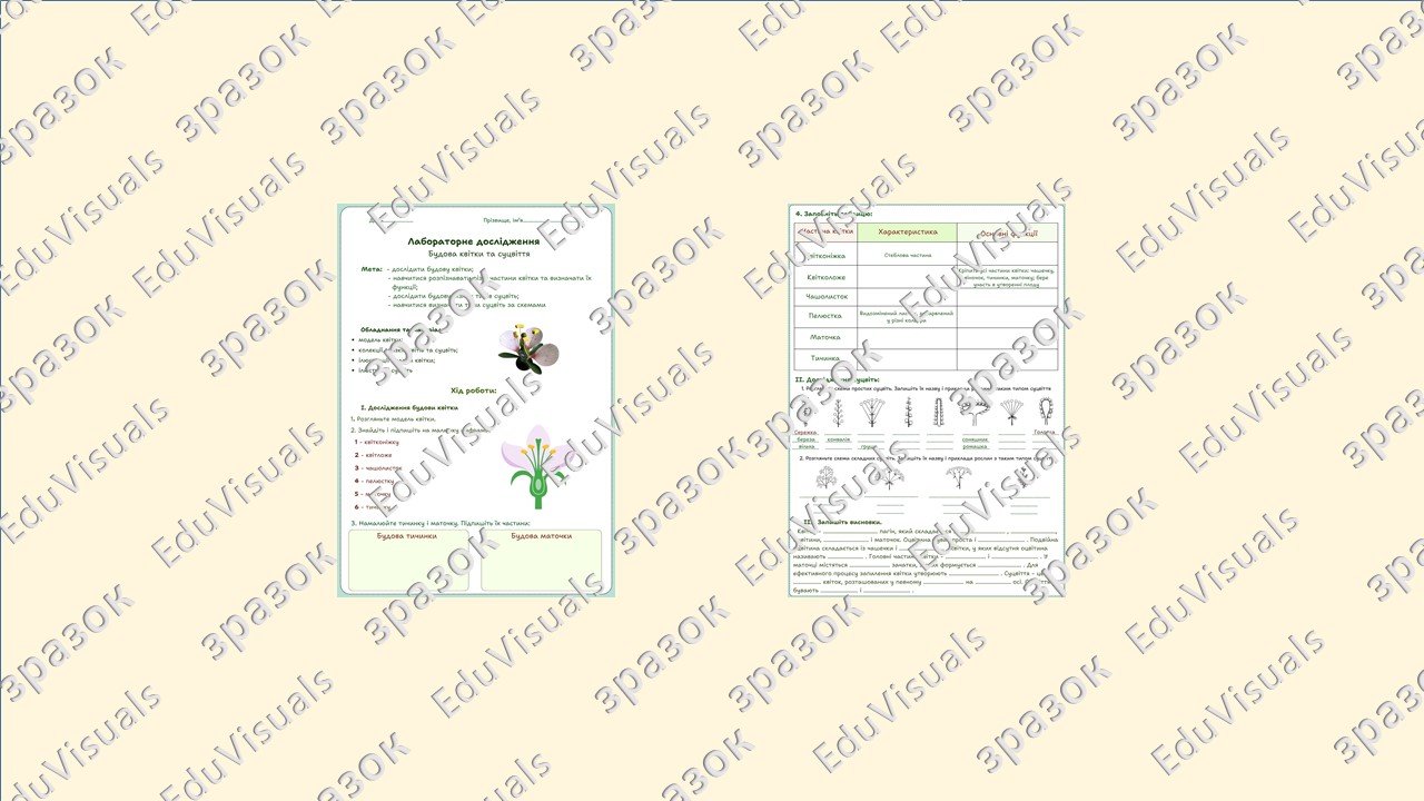Як купити матеріал «Лабораторне дослідження “Будова квітки і суцвіття”. Біологія 7 клас НУШ»?