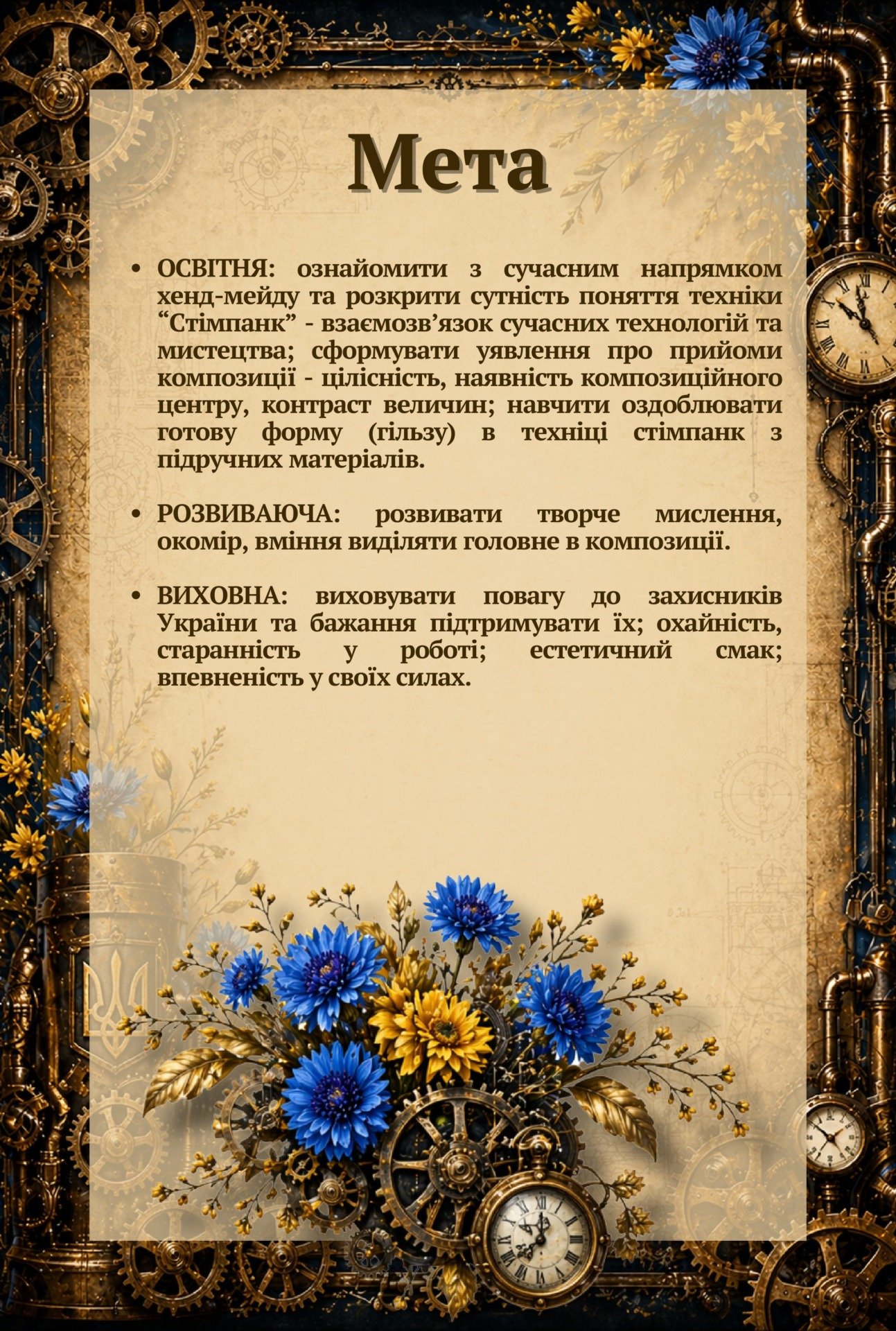 Матеріали «Майстер-клас «Розквітнуть квіти на снарядах»: створення патріотичного сувеніра в техніці стімпанк (Мистецтво перемоги)» будуть надіслані в електронному вигляді на вашу поштову скриньку одразу після оплати.