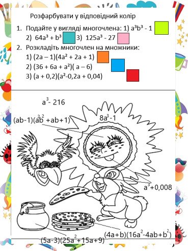 Математичні розмальовки для 7 класу з алгебри (30 штук) на весь рік