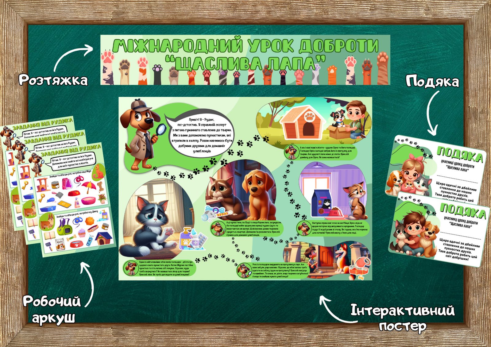Матеріали «Матеріал до Міжнародного уроку доброти “Щаслива лапа”» будуть надіслані в електронному вигляді на вашу поштову скриньку одразу після оплати.