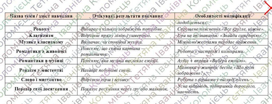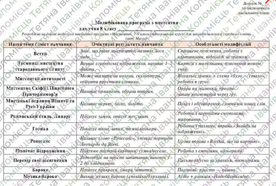 Адаптована навчальна програма “Мистецтво” 8 клас НУШ (на основі модельної програми ав...