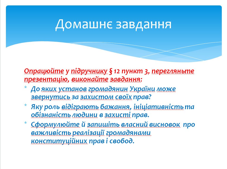 Презентація до уроку на тему: Механізми захисту прав та свобод людини і громадянина в Україні. Правознавство 9 клас. За підручником з Основ правознавства. 9 клас. Ремех – Нова програма.