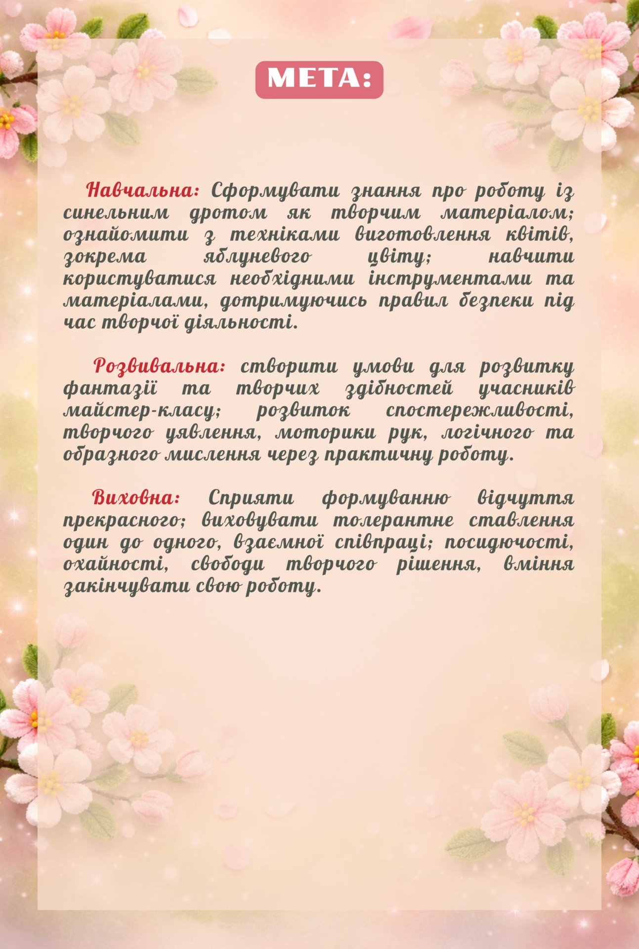 Теоретичний блок про символіку яблуневого цвіту (весна, оновлення, материнська любов).