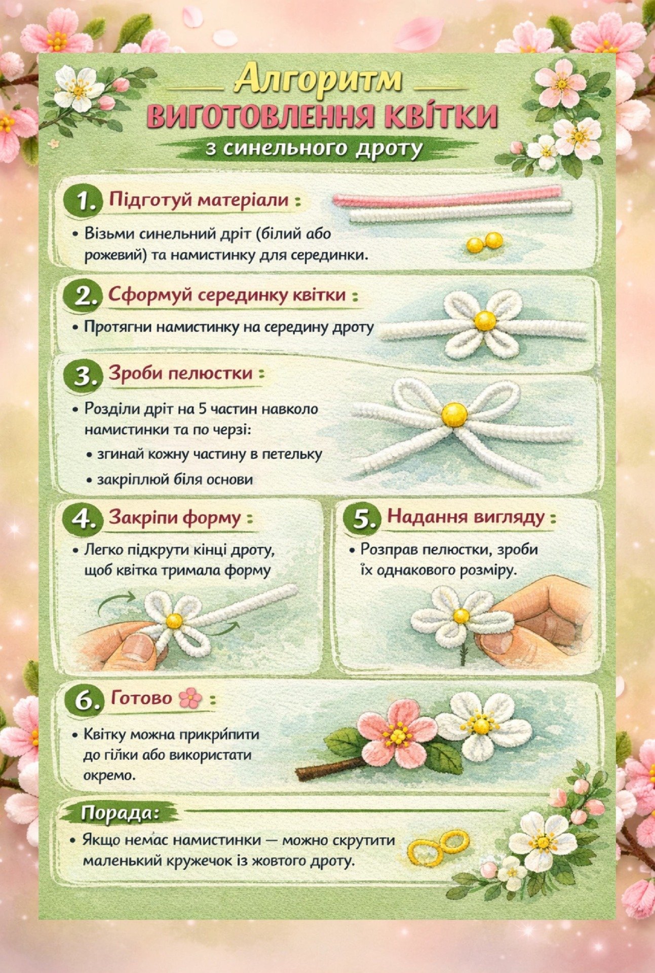 Безпека та естетика: синельний дріт є приємним на дотик, яскравим і безпечним матеріалом, який легко пробачає помилки (можна розкрутити і зробити заново).