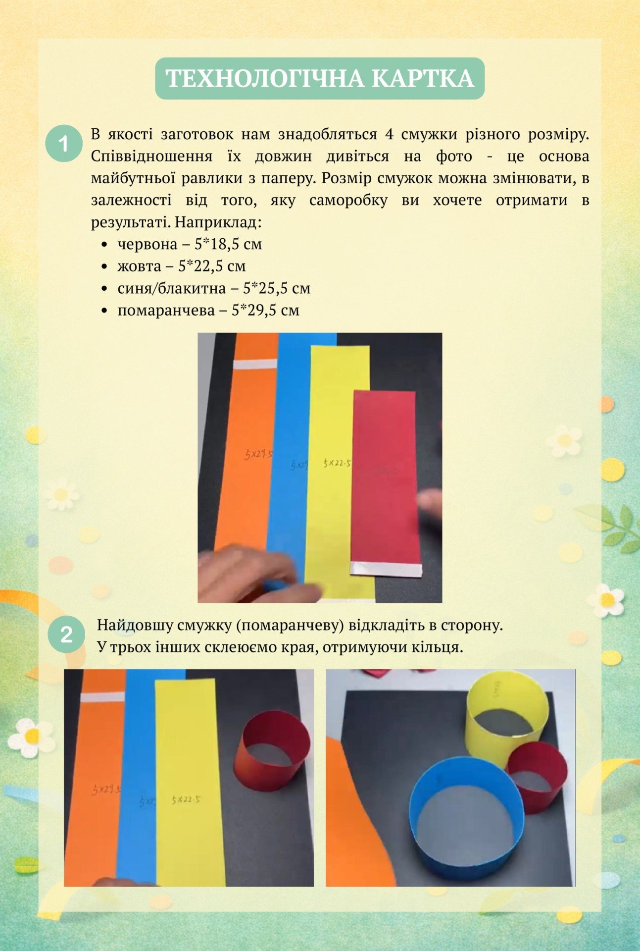 Доступність матеріалів: потрібні лише базові канцелярські приладдя (кольоровий папір/картон, ножиці, клей).