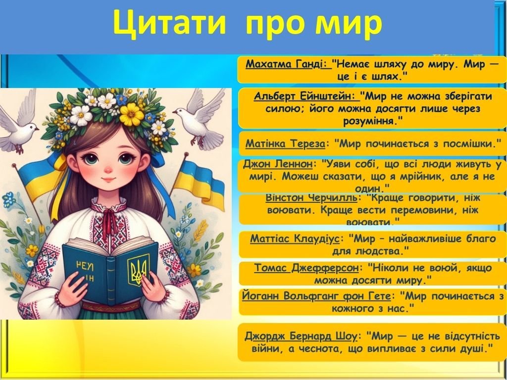 Мегазбірка до Дня миру 2025. 21 вересня – Міжнародний день миру. “Крила миру – ...