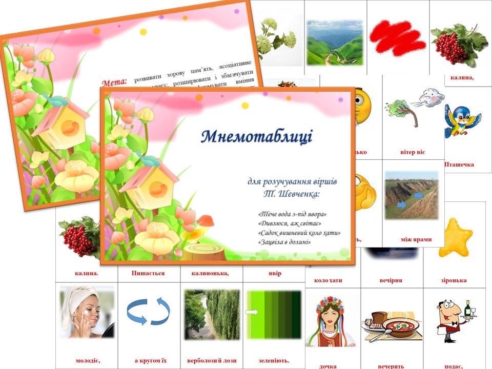 Мнемотаблиці для розучування віршів Т.Шевченка
