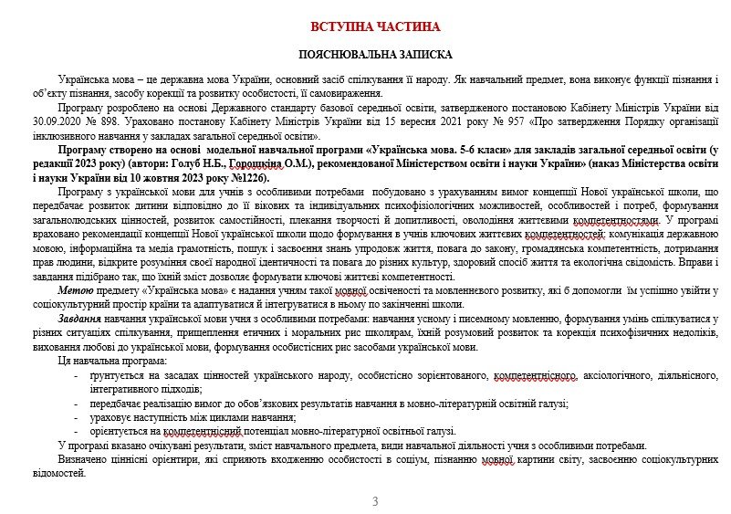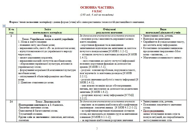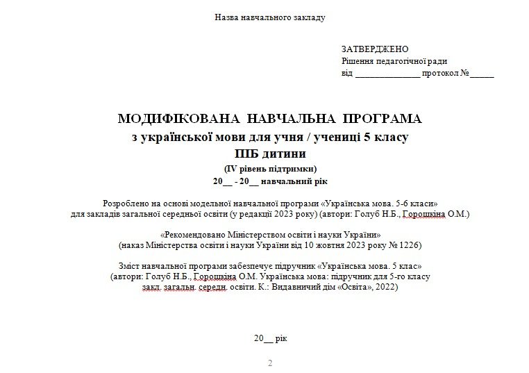 Програму створено на основі модельної навчальної програми «Українська мова. 5-6 класи» для закладів загальної середньої освіти (автори: Голуб Н. Б., Горошкіна О. М.). Зміст програми забезпечує підручник «Українська мова. 5 клас» (автори: Голуб Н. Б., Горошкіна О. М. Українська мова. Підручник для 5-го кл. закл. загальн. сер. осв. К.: Видавничий дім «Освіта», 2022).