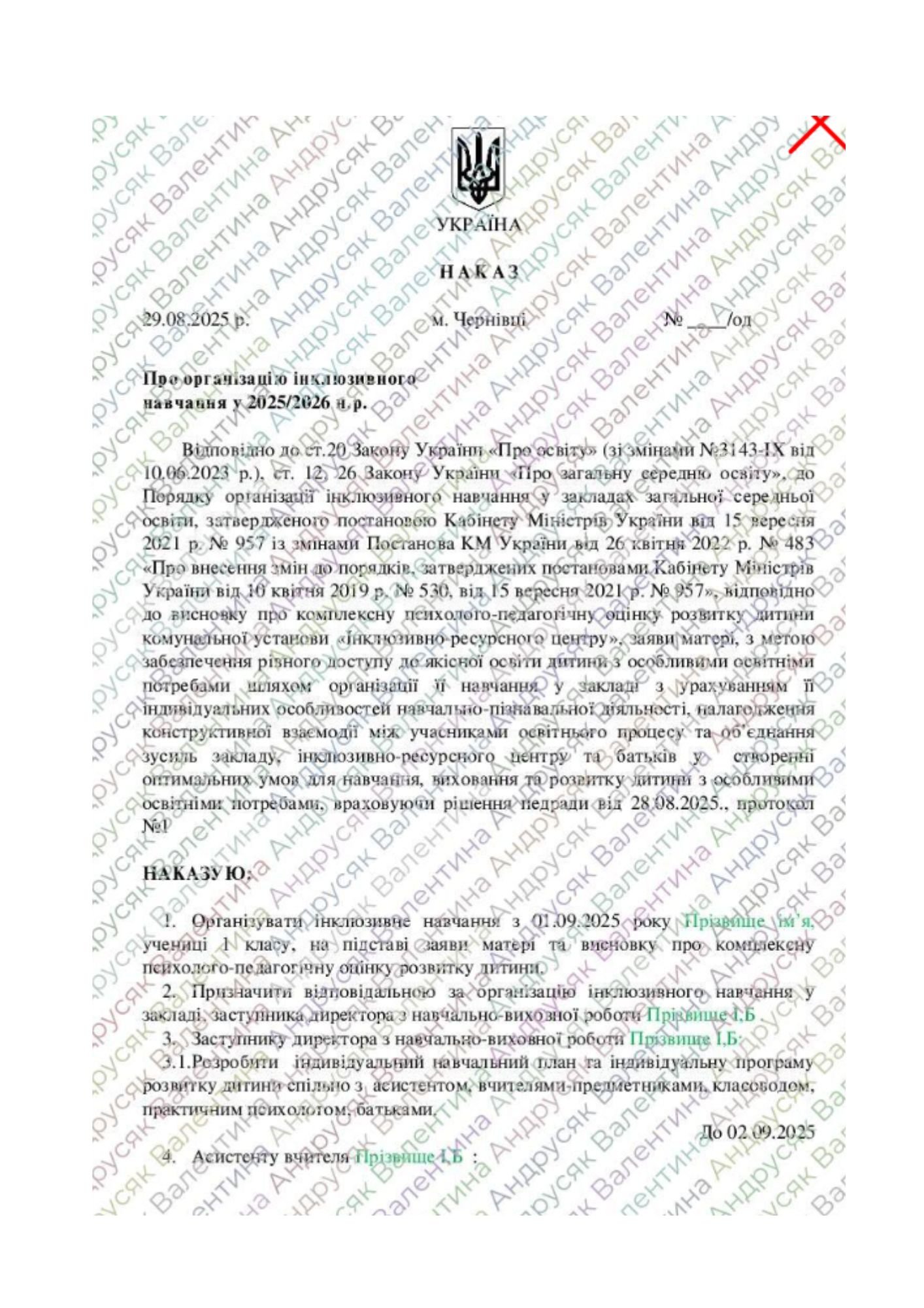 Наказ “Про організацію роботи психолого-педагогічного консиліуму у 2025/2026 навчальному ро...