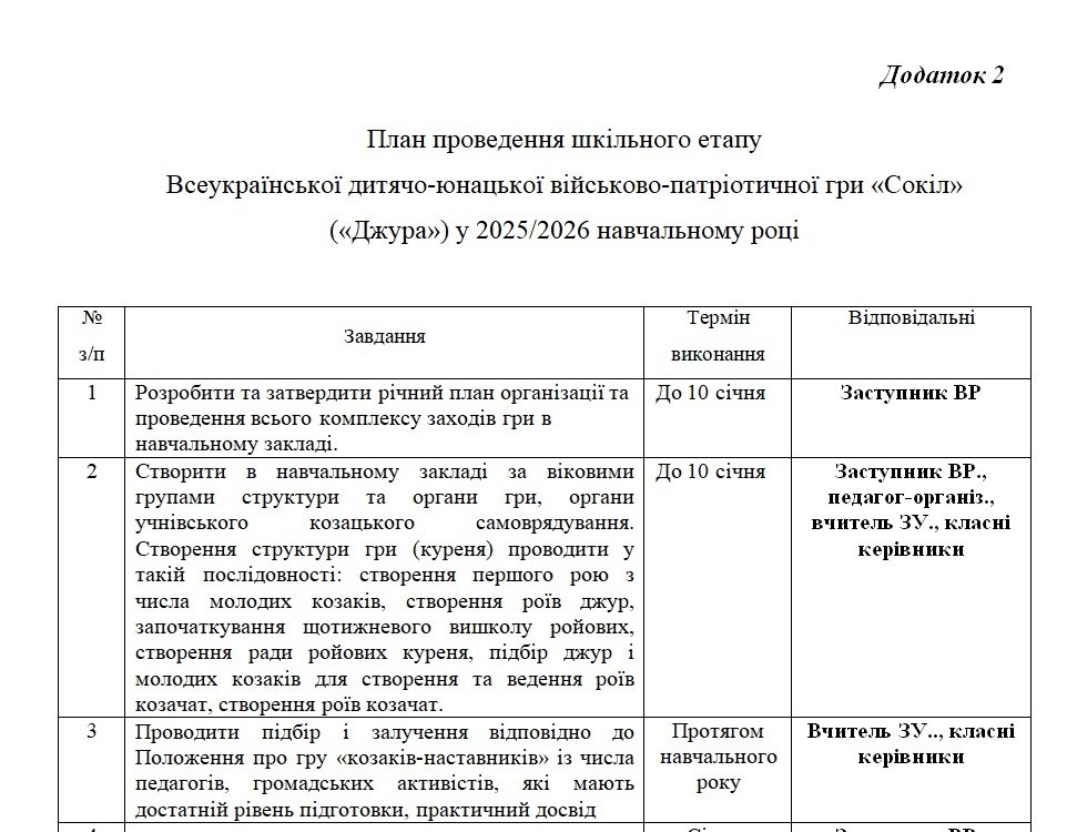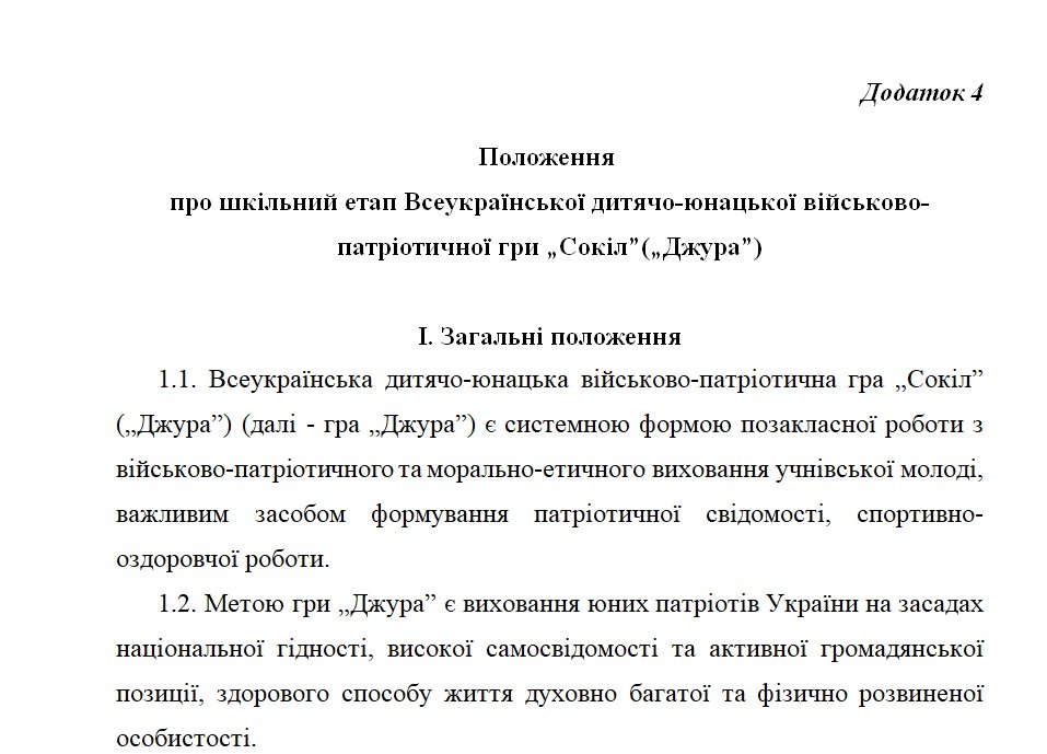 На виконання листа Міністерства освіти і науки України, відповідно до Концепції національно-патріотичного виховання дітей та молоді, з метою формування в учнівської молоді патріотичної свідомості, активної громадянської позиції, готовності до захисту України, розвитку фізичних, морально-психологічних якостей, а також популяризації українських національних традицій,