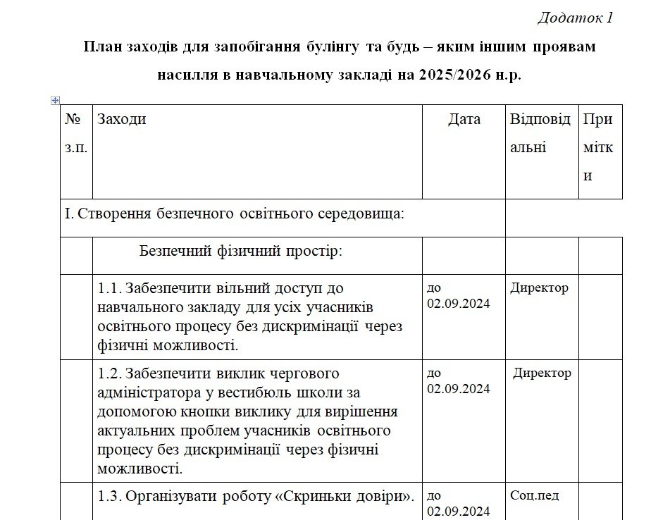 З метою створення безпечного освітнього середовища, запобігання проявам булінгу (цькування), своєчасного реагування на випадки порушення прав учасників освітнього процесу, а також відповідно до Закону України «Про освіту», статті 25 Закону України