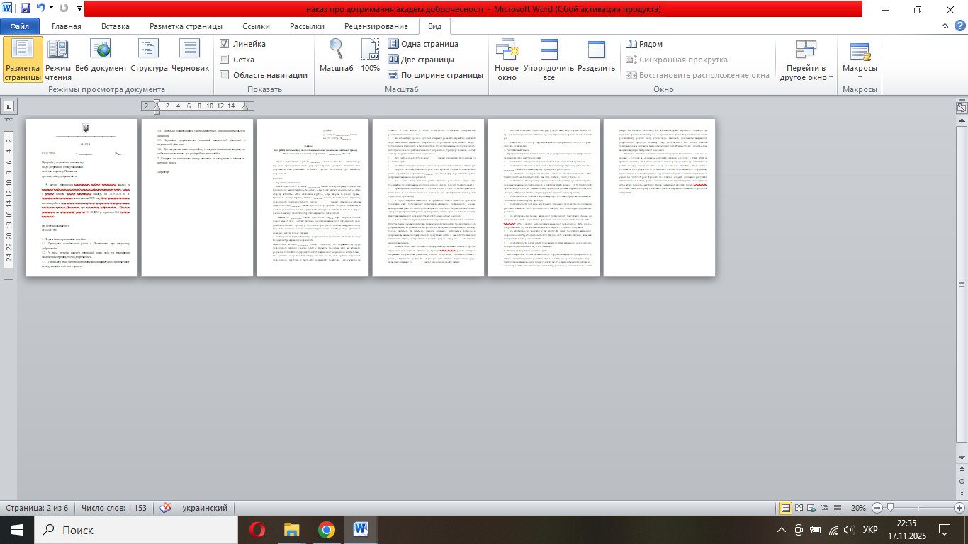 Наказ “Про роботу педагогічного колективу щодо дотримання всіма учасниками освітнього процесу Положення про академічну доброчесність “