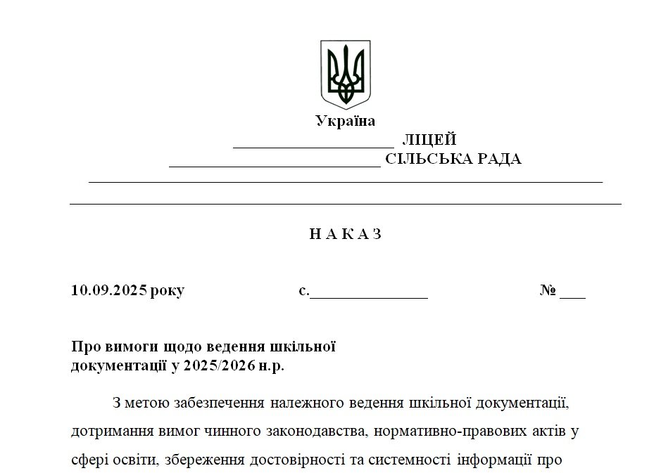 Наказ “Про вимоги щодо ведення шкільної документації у 2025/2026 н.р.”
