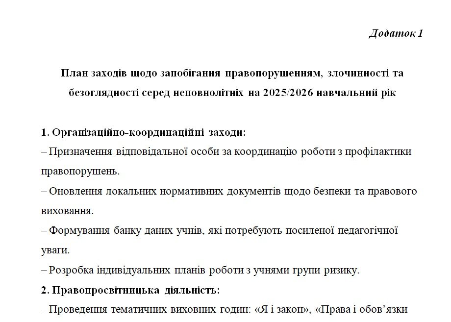 Річний план виховної роботи школи на 2025-2026 навчальний рік/План виховної роботи ЗДВР на 2025-2...