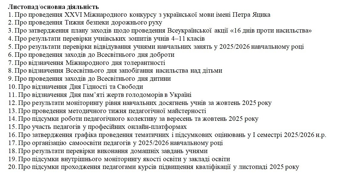 Накази основної діяльності закладу освіти на листопад 2025/2026 н.р.