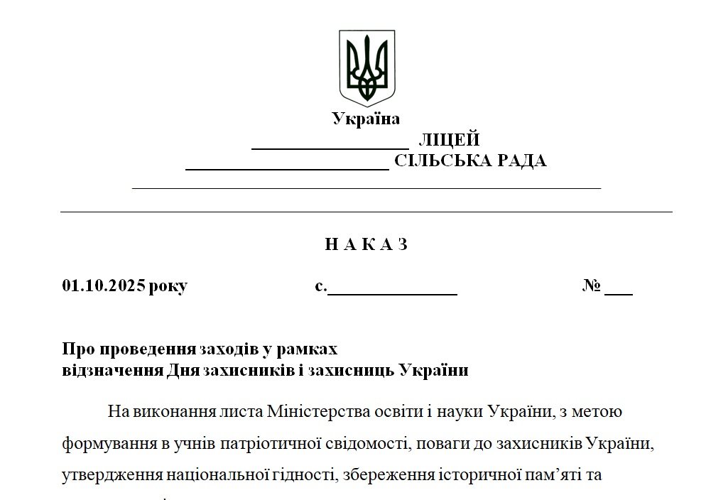 Накази основної діяльності закладу освіти на жовтень 2025/2026 н.р.