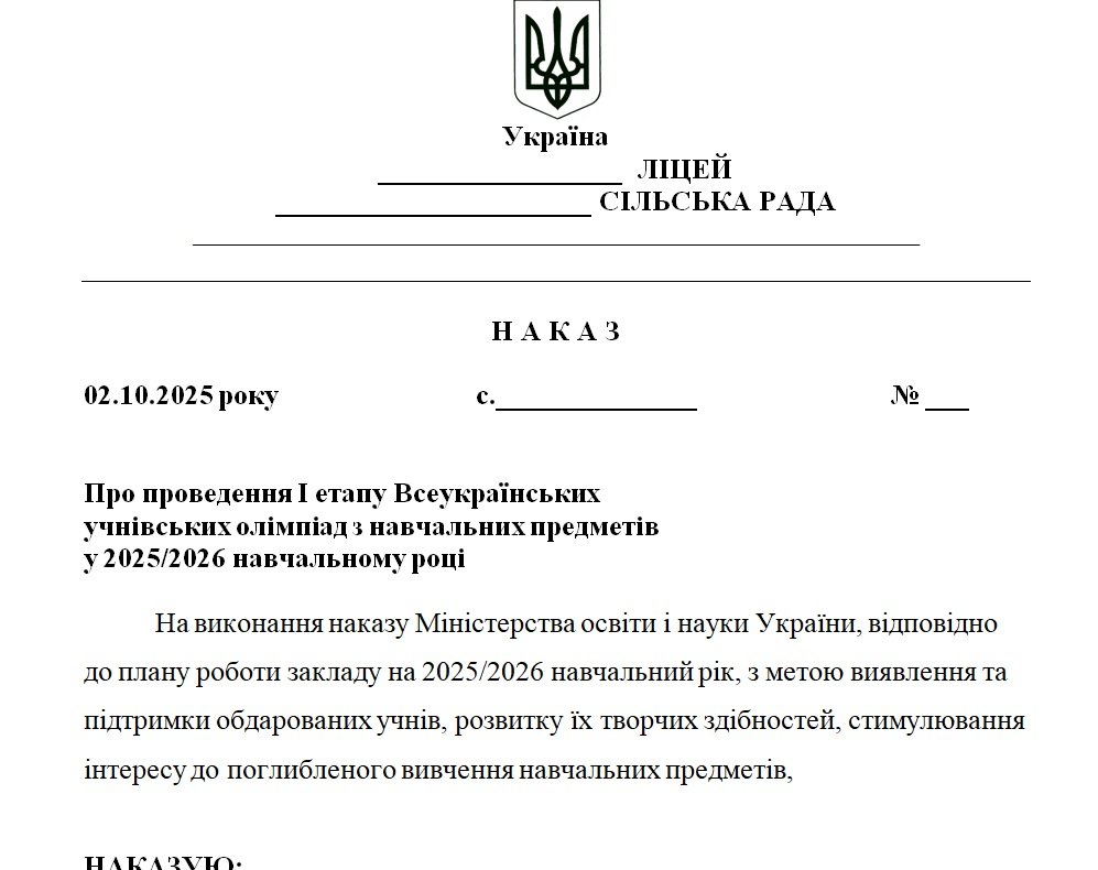 3. Про проведення І етапу Всеукраїнських учнівських олімпіад з навчальних предметів у 2025/2026 навчальному році