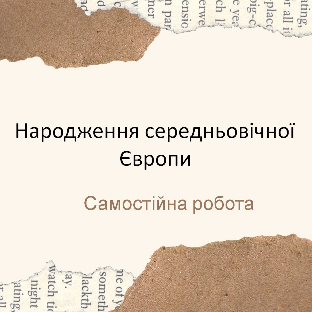 Діагностувальна робота №1. Народження середньовічної Європи (до параграфів №1-8). 7 кл. Васильків