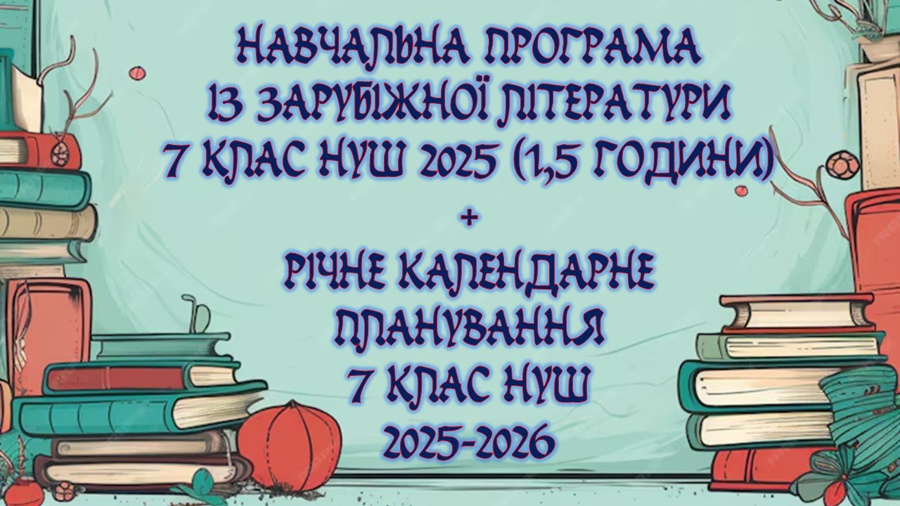 Навчальна програма із зарубіжної літератури 7 клас НУШ 2025 н. р. (52,5 години, за Ніколенко) + річне календарне планування
