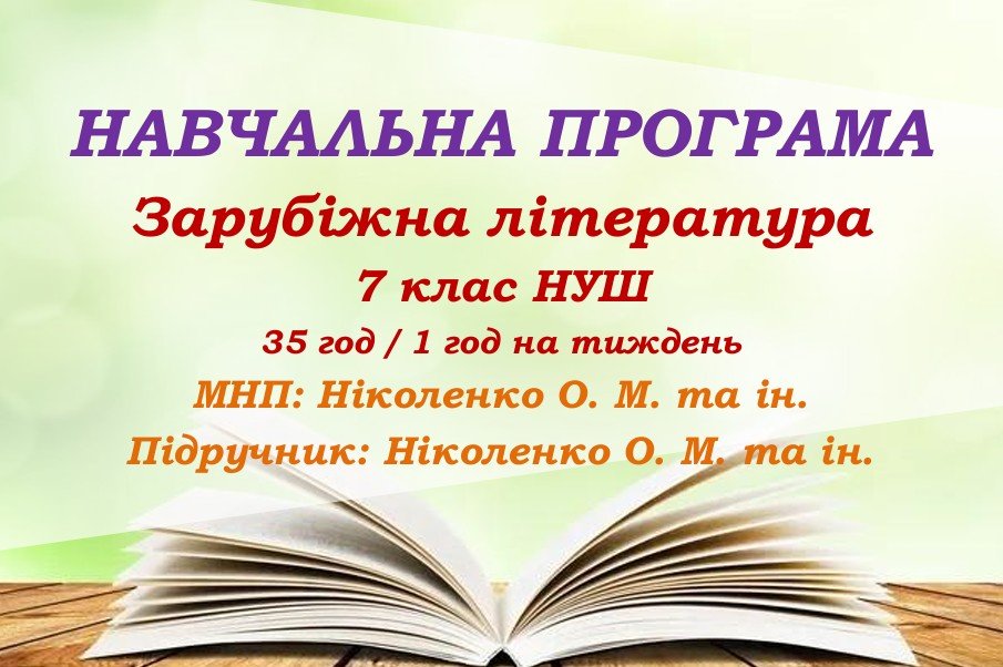 НАВЧАЛЬНА ПРОГРАМА із зарубіжної літератури для 6 класу НУШ. НІКОЛЕНКО О.М.(70 год / 2 год на тиж...