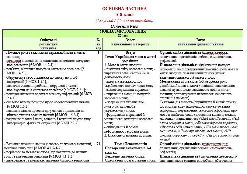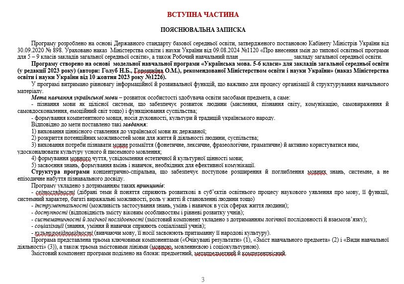 Навчальну програму укладено на основі модельної навчальної програми «Українська мова. 5-6 класи» для закладів загальної середньої освіти (автори: Голуб Н. Б., Горошкіна О. М.).