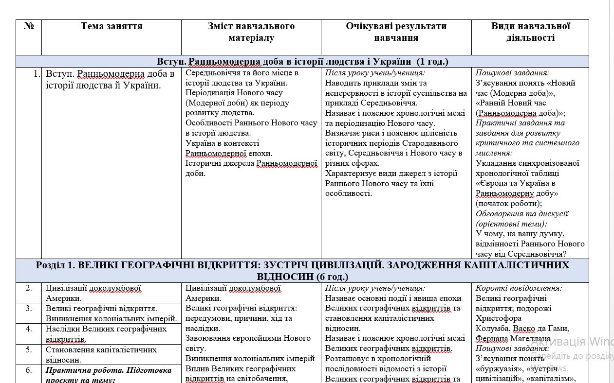 Навчальна програма з курсу «Всесвітня історія”. 8 клас. 35 години. НУШ. За модельною програ...