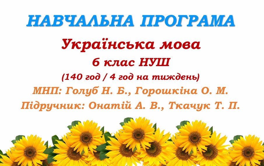 Зміст навчальної програми забезпечує підручник «Українська мова. 6 клас»(автори: Онатій А., Ткачук Т. Українська мова: підручник для 6-го класу закл. загальн. середн. освіти. Тернопіль. Навчальна книга – Богдан, 2023).