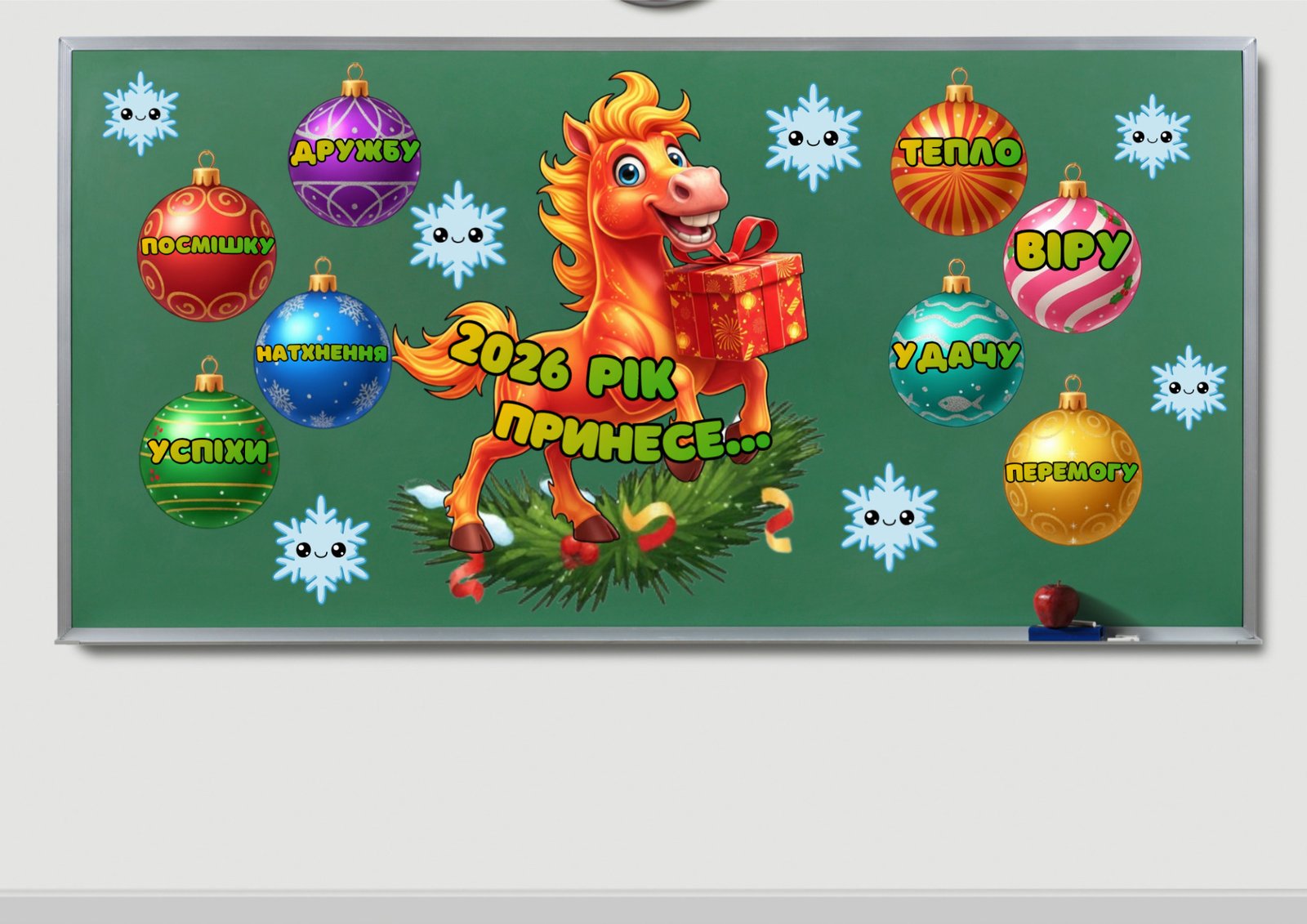🎄 кульки з написами: «Успіхи», «Натхнення», «Посмішку», «Дружбу», «Тепло», «Віру», «Удачу», «Перемогу»