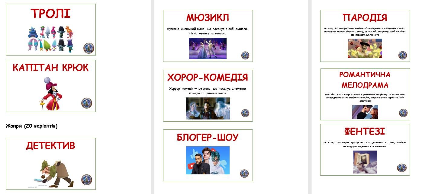 ✨ готові картки з персонажами, жанрами й локаціями