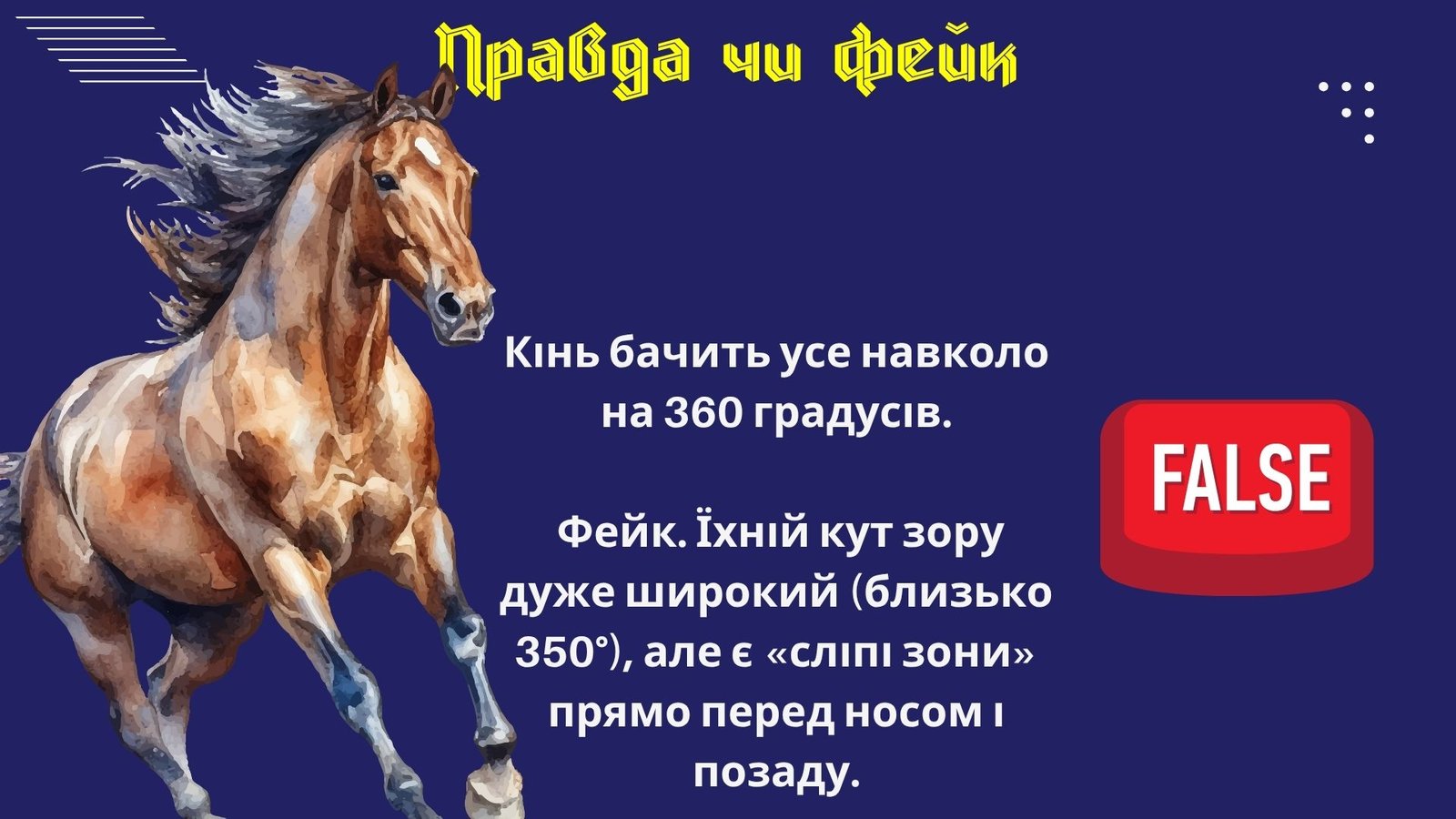 - Завдання. З висловлювання про коней вирішити: “Правда чи фейк.”