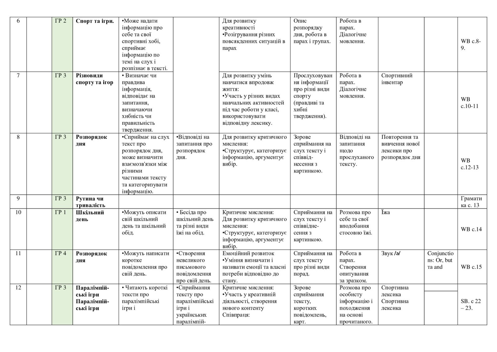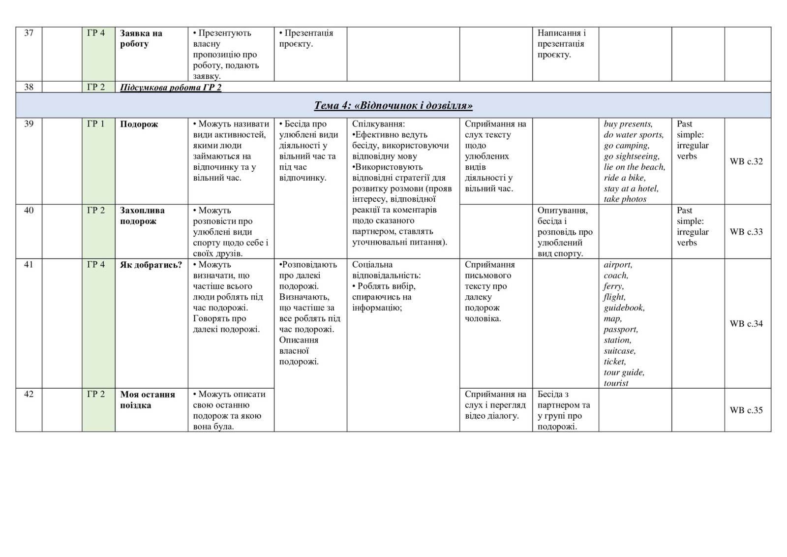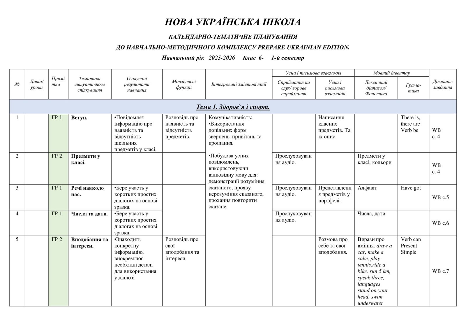 КТП з англійської мови у 7 (3,5 години) класі за PREPARE 7 з групами результатів. 4 ГР ІІ модель