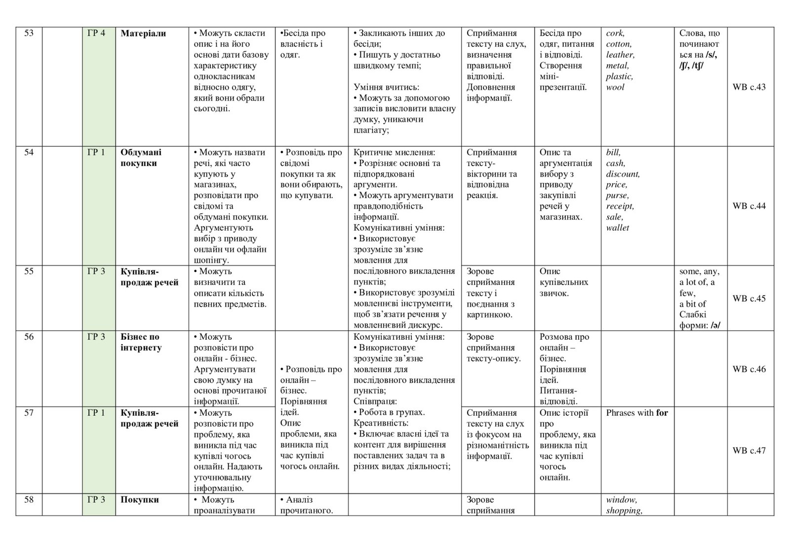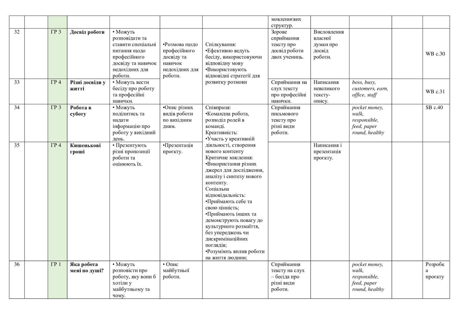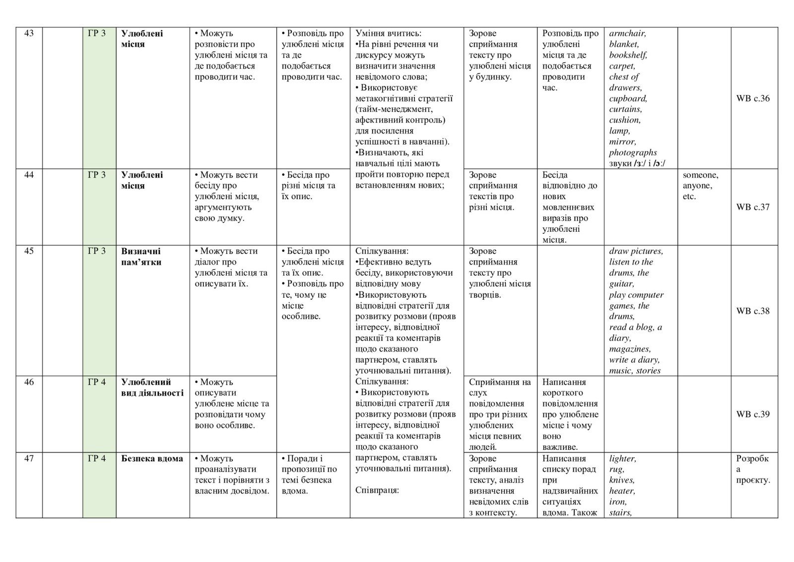 КТП з англійської мови у 7 (3,5 години) класі за PREPARE 7 з групами результатів. 4 ГР ІІ модель