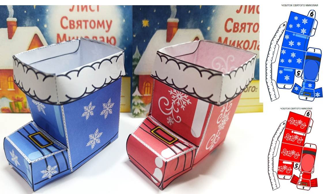 Об’ємна поробка “Чобіток Святого Миколая” — синій та червоний варіан