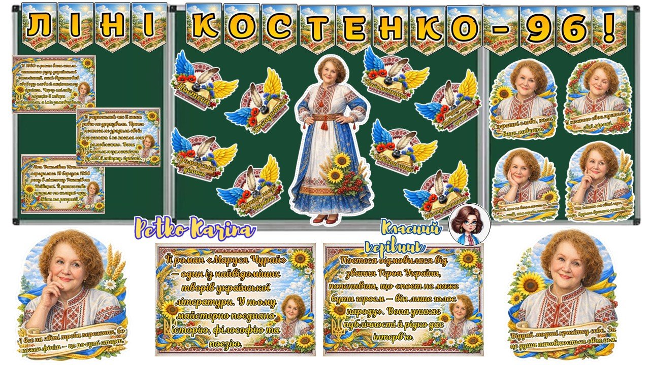 Як купити матеріал «Оформлення дошки – 19 березня Ліні Костенко – 96»?