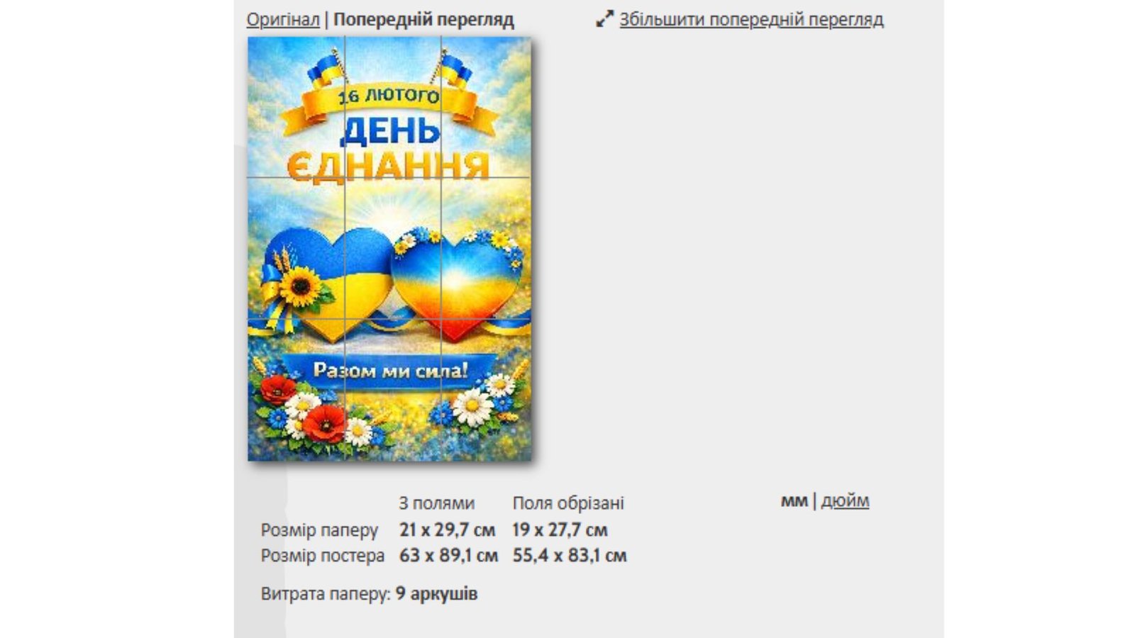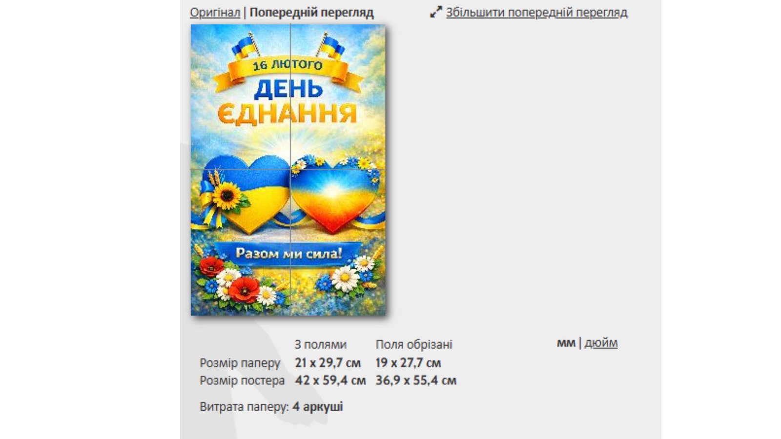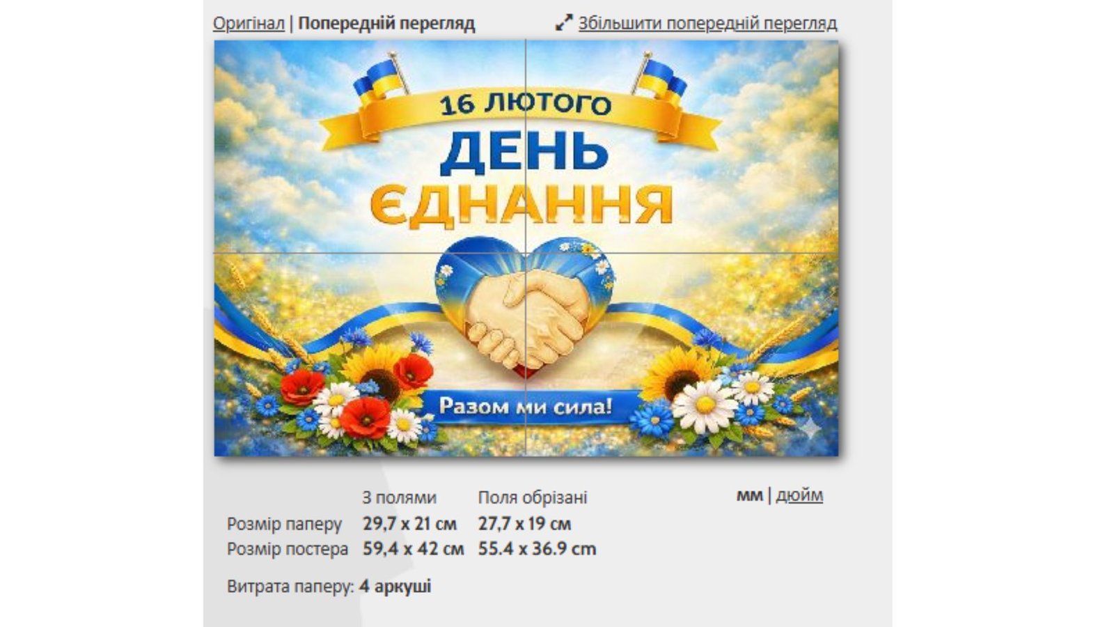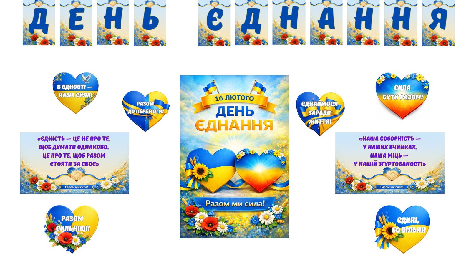 - розтяжка “ДЕНЬ ЄДНАННЯ” (кожна літера на А4)