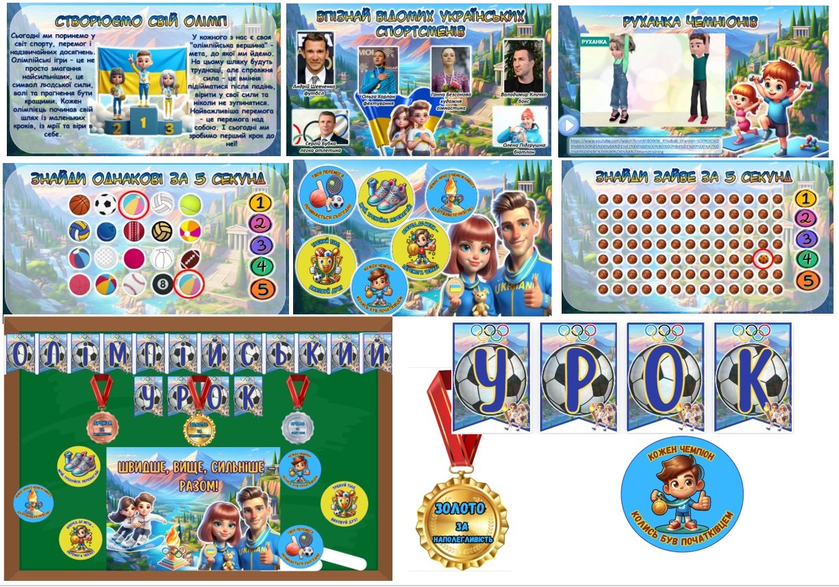 ОЛІМПІЙСЬКИЙ УРОК (презентація+конспект) + оформлення + роздаткові вправи)