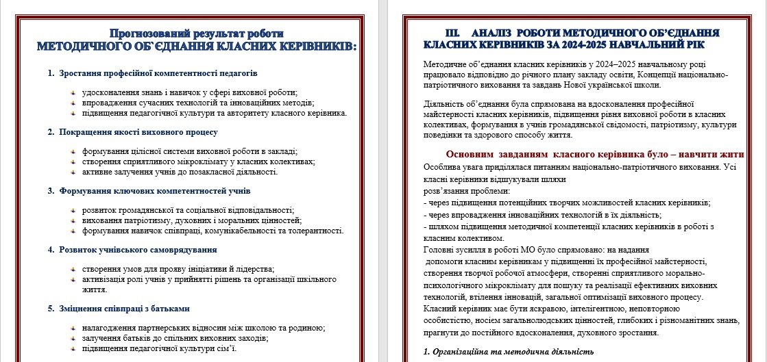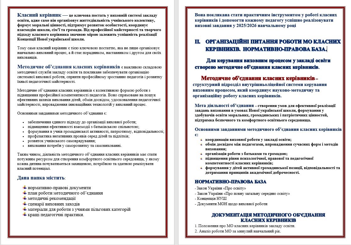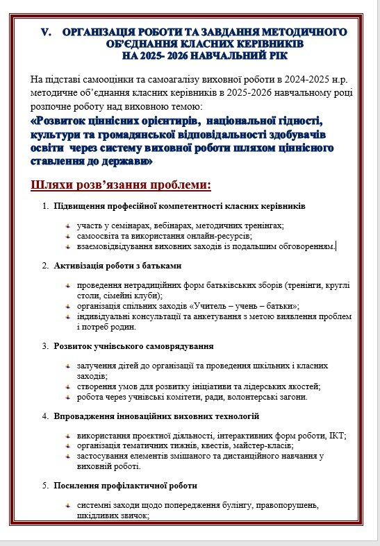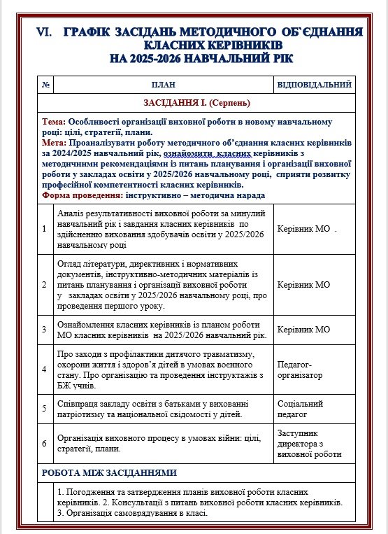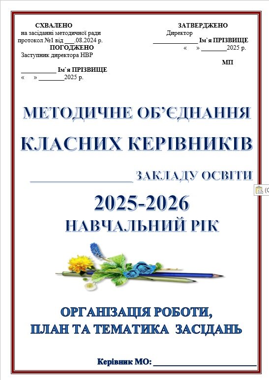 ОРГАНІЗАЦІЯ РОБОТИ МЕТОДИЧНОГО ОБ`ЄДНАННЯ КЛАСНИХ КЕРІВНИКІВ В 2025-2026 НАВЧАЛЬНОМУ РОЦІ