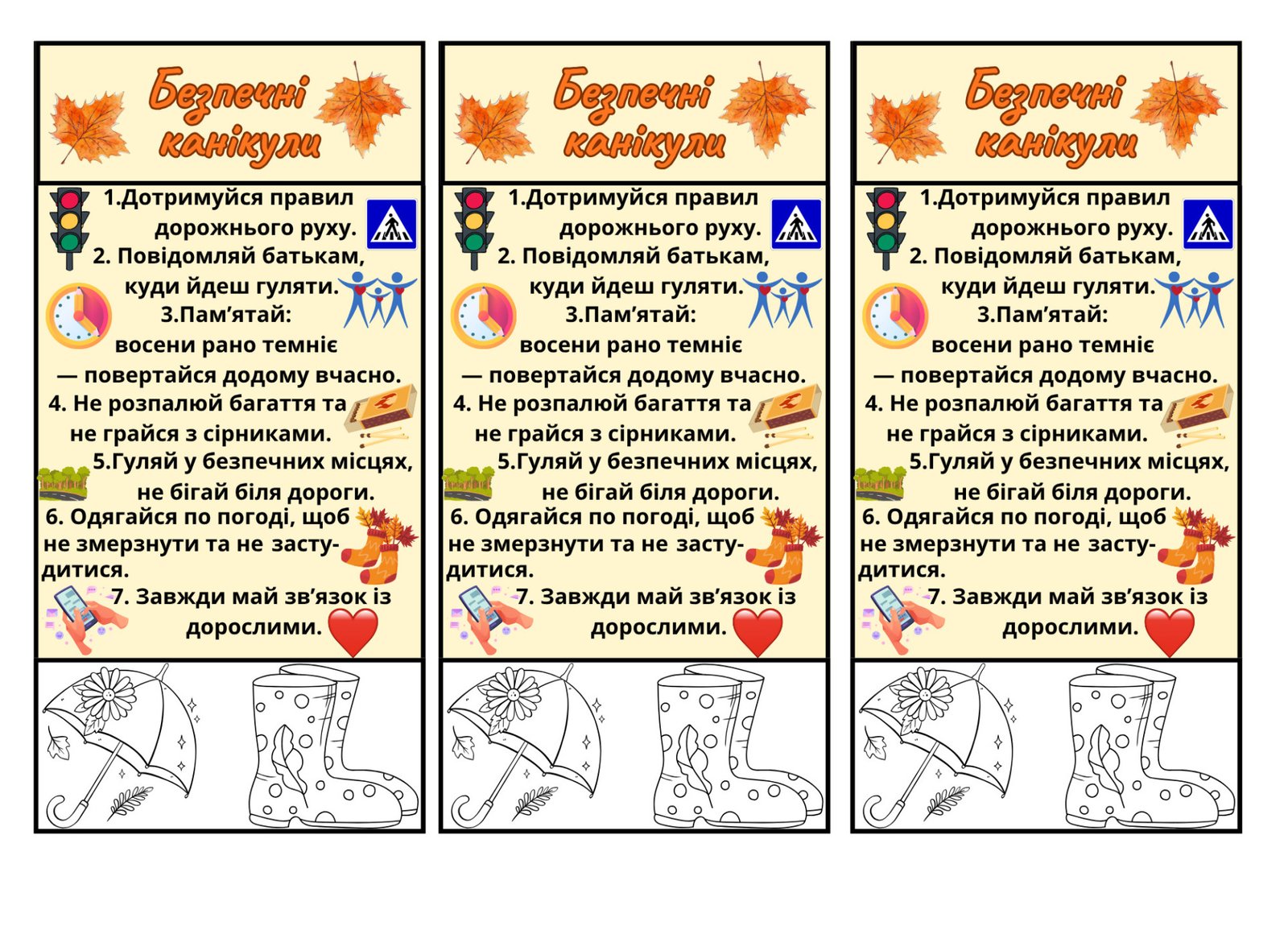 Пам’ятка на осінні канікули 2025-2026 н.р. Інструктаж з безпеки життєдіяльності під час осі...