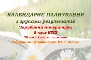 Календарне планування з ГР. Зарубіжна література. 8 клас НУШ. Ковбасенко Ю. І. та ін. (70 год / 2 год на тиждень). Модель оцінювання 1.