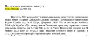 Цей наказ підсумовує результати роботи з цивільного захисту (ЦЗ) у навчальному закладі за 2025 рік, визнаючи її задовільною.