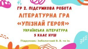 ГР 2. Підсумкова робота. Літературна гра «Упізнай героя». Українська література. 5 клас НУШ (підручник: Архипова В. П. та ін.).