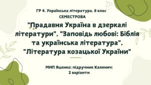 ГР 4. Підсумкова ( 1 СЕМЕСТР) робота з української літератури для 8 класу за модельною навчальною програмою Яценко; підручник Калинич.