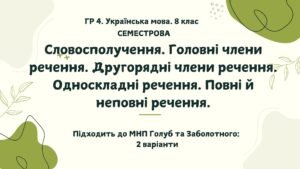ГР 4. 8 клас. Українська мова. За І СЕМЕСТР. Підходить до модельних навчальних програм Голуб та Заболотного. ПЕРЕВІРЕНО!!!!!