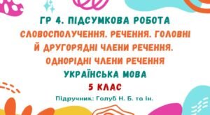 ГР 4. Підсумкова робота №4. Відомості з синтаксису й пунктуації (І частина). Українська мова. 5 клас НУШ (підручник: Голуб Н. Б. та ін.).