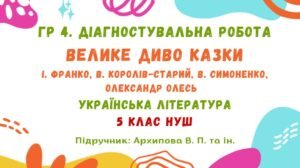 ГР 4. Діагностувальна робота №2. Велике диво казки. Українська література. 5 клас НУШ (підручник: Архипова В. П. та ін.).