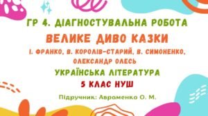 ГР 4. Діагностувальна робота №2. Велике диво казки. Українська література. 5 клас НУШ (підручник: Авраменко О. М.).