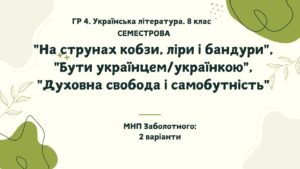 ГР 4. Підсумкова (СЕМЕСТРОВА) робота з української літератури для 8 класу за модельною навчальною програмою Заболотного.
